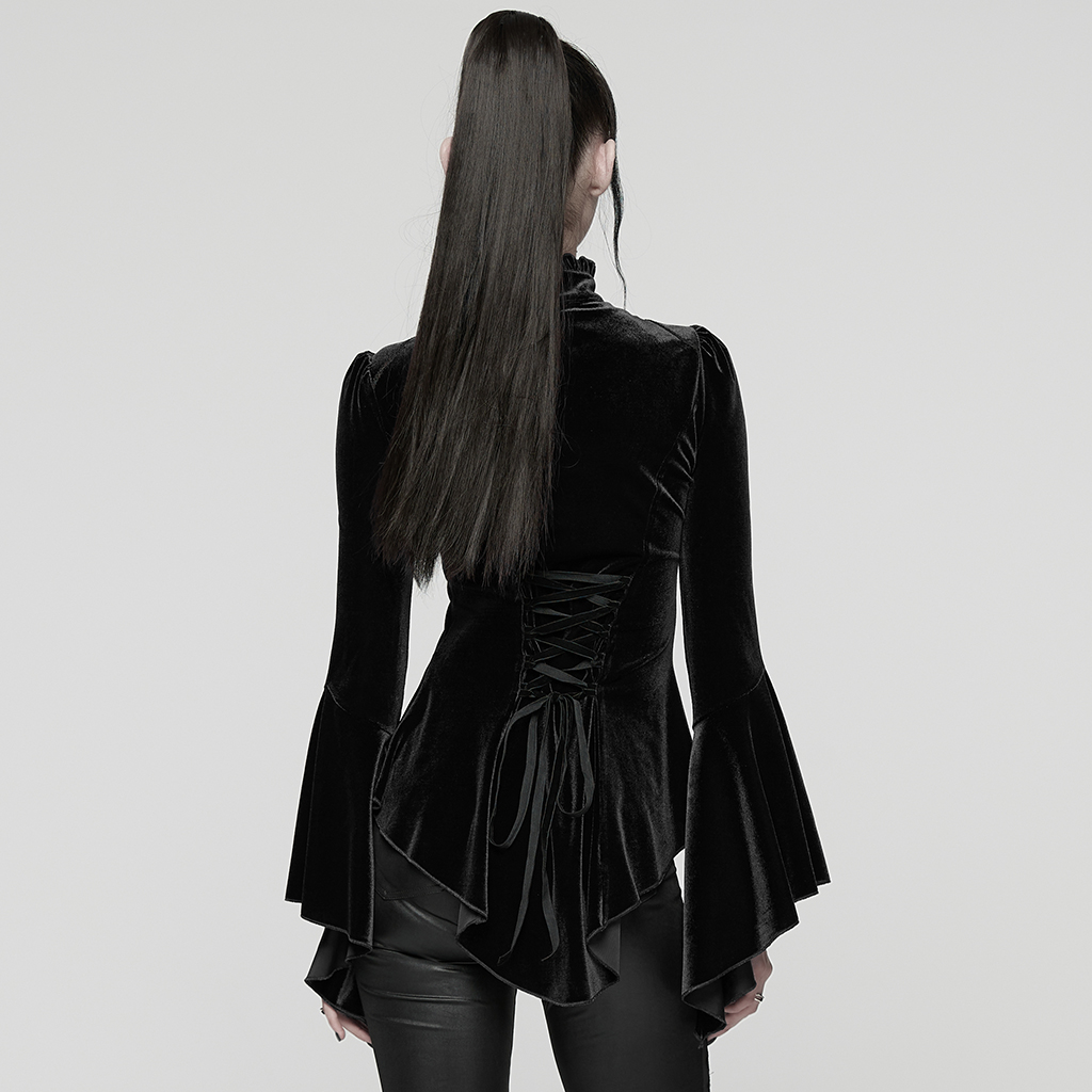 Punk Rave Amara Bell Sleeve High Neck Velvet Gothic Top