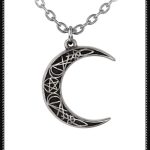 A crescent moon pendant baring magic symbols handmade in fine English pewter.