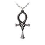 Step into a realm where ancient symbols meet modern artistry. Introducing the Ankh of Ammon-a striking piece crafted from heavy antiqued pewter, meticulously designed to captivate and empower. This isn’t just a pendant; it’s a statement. Adorned with beautifully sculpted bones and a formidable ram skull, the Ankh boasts blackened twisted horns, embodying the potent duality of ferocity and fertility.