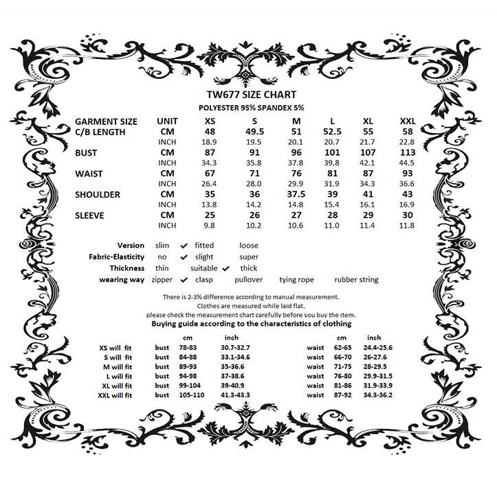 XS, S, M, L, XL, 2XL