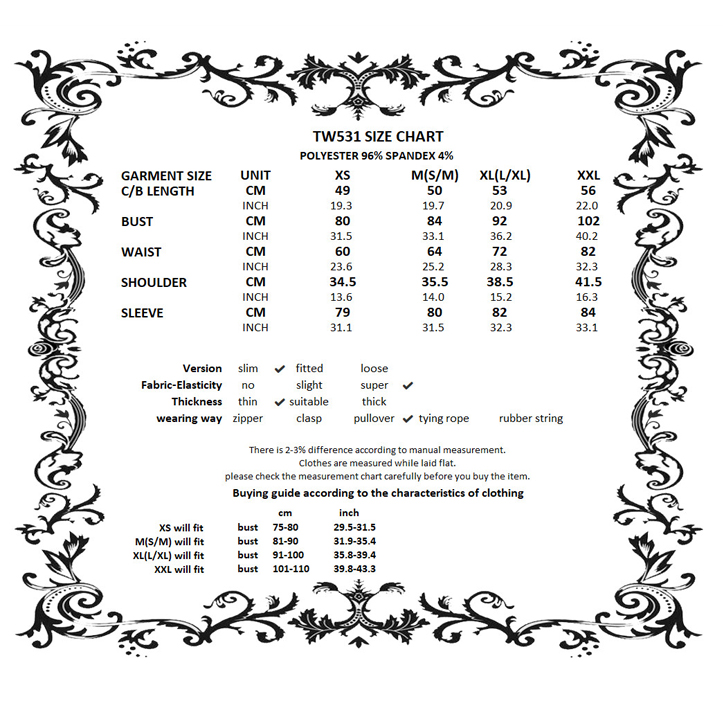 XS(2XS/XS), M(S/M), XL(L/XL), 2XL(2XL/3XL)