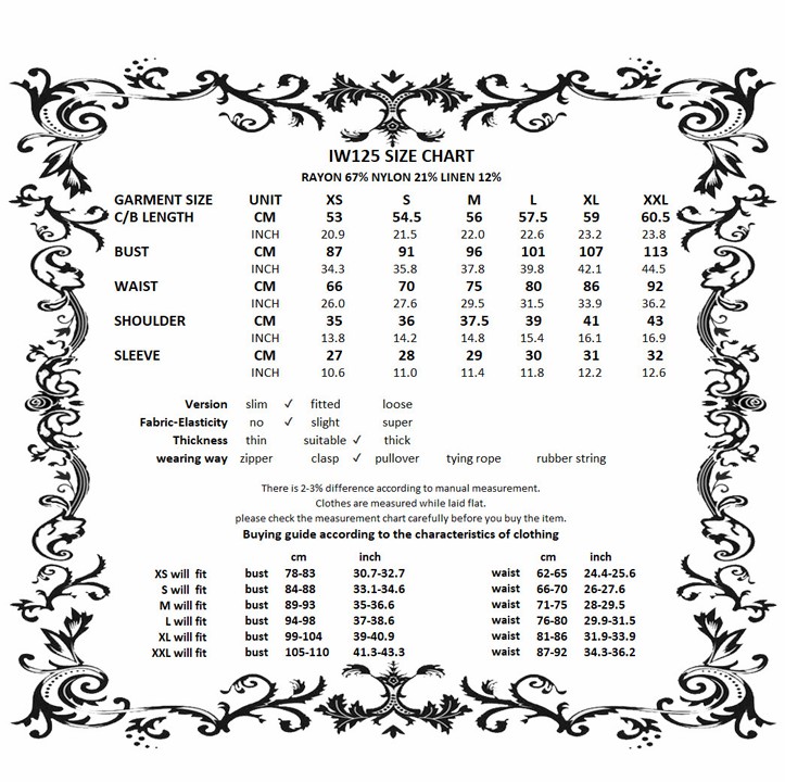 XS, S, M, L, XL, 2XL