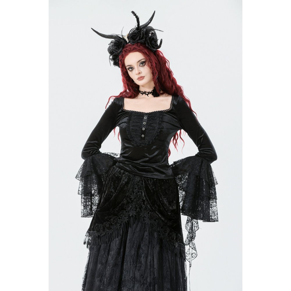 Dark In Love Layla Velvet Long Sleeve Lace Top