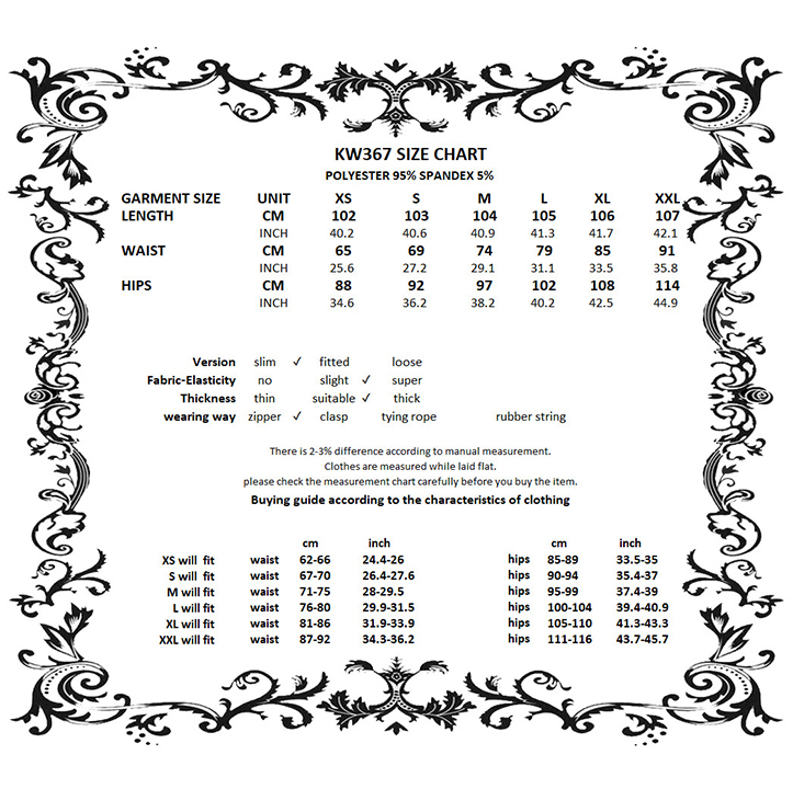 XS, S, M, L, XL, 2XL