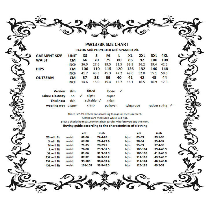XS, S, M, L, XL, 2XL