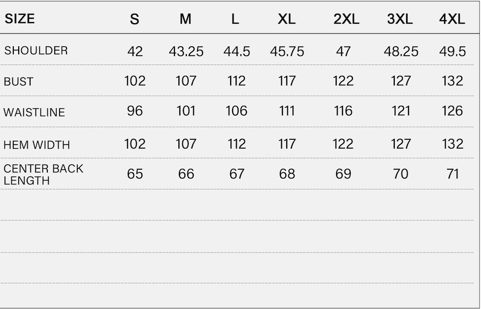 S, M, L, XL, 2XL, 3XL