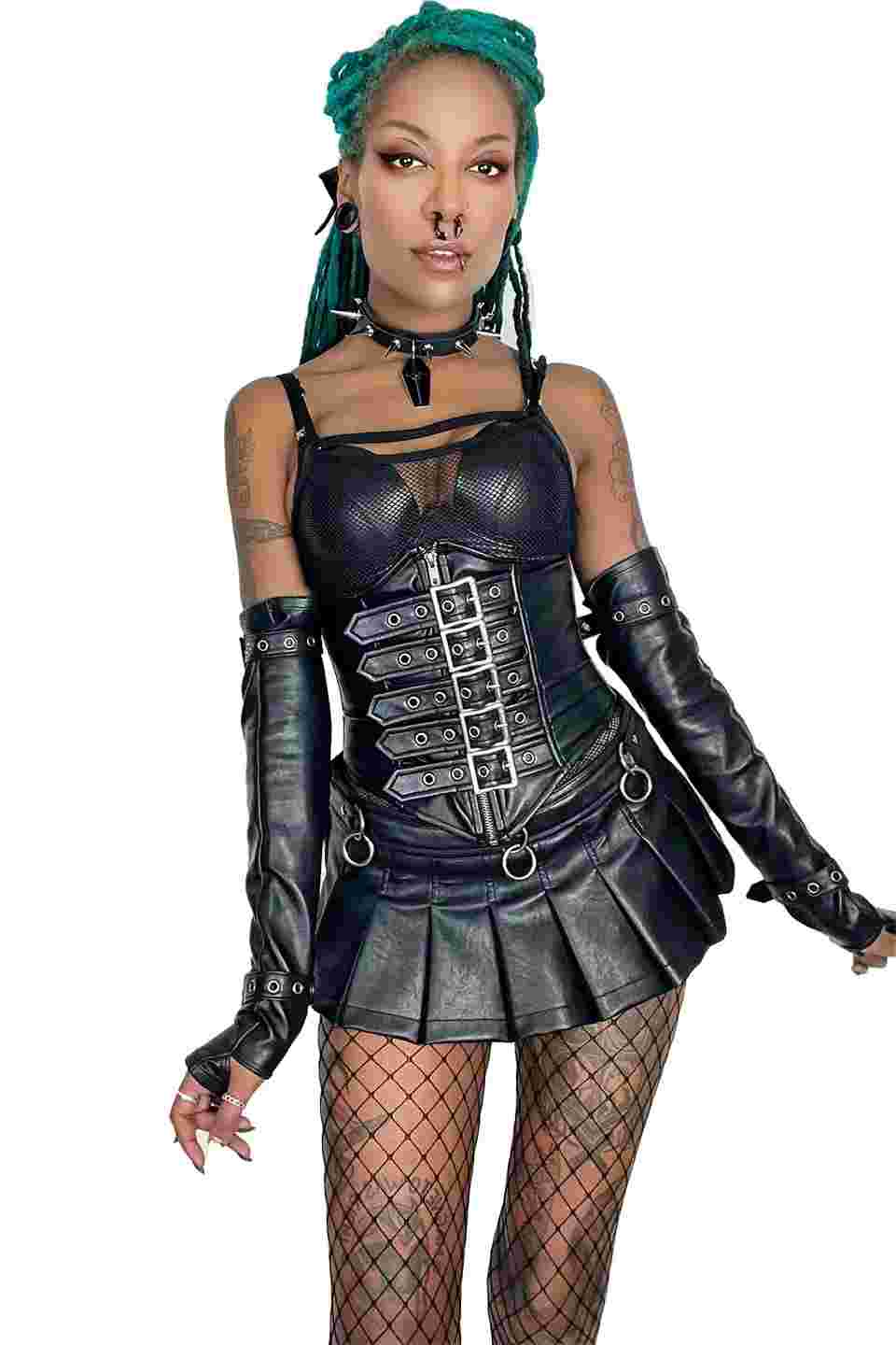 Be the first to review “Pleated Micro Mini Bondage Skirt in Matte Black Vegan Leather”