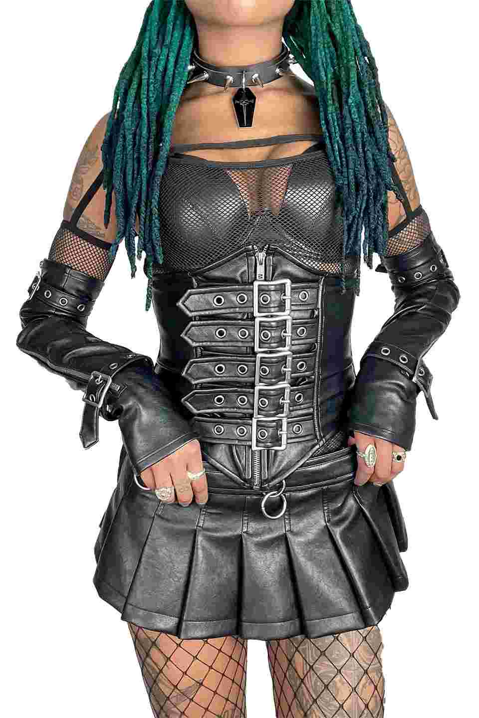 Pleated Micro Mini Bondage Skirt in Matte Black Vegan Leather