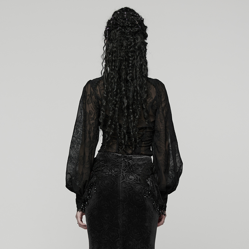 Punk Rave Black Entombed Bishop Sleeve Lace Gothic Blouse