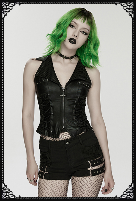 Punk Rave Dragara Faux Leather Zip Up Gothic Vest