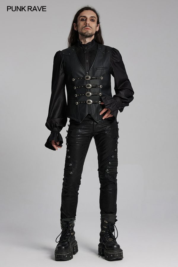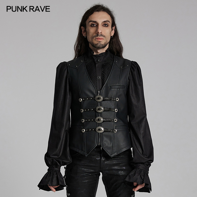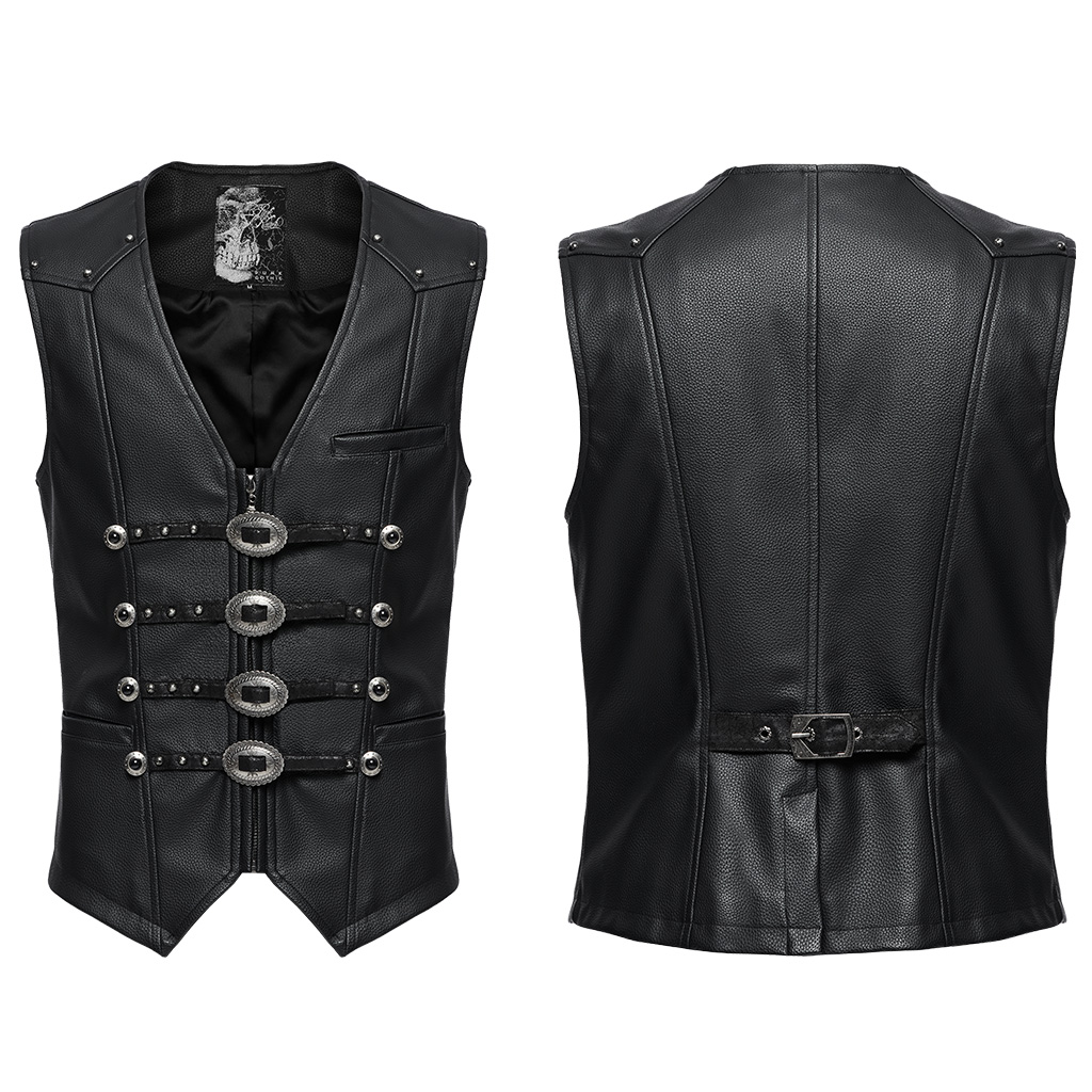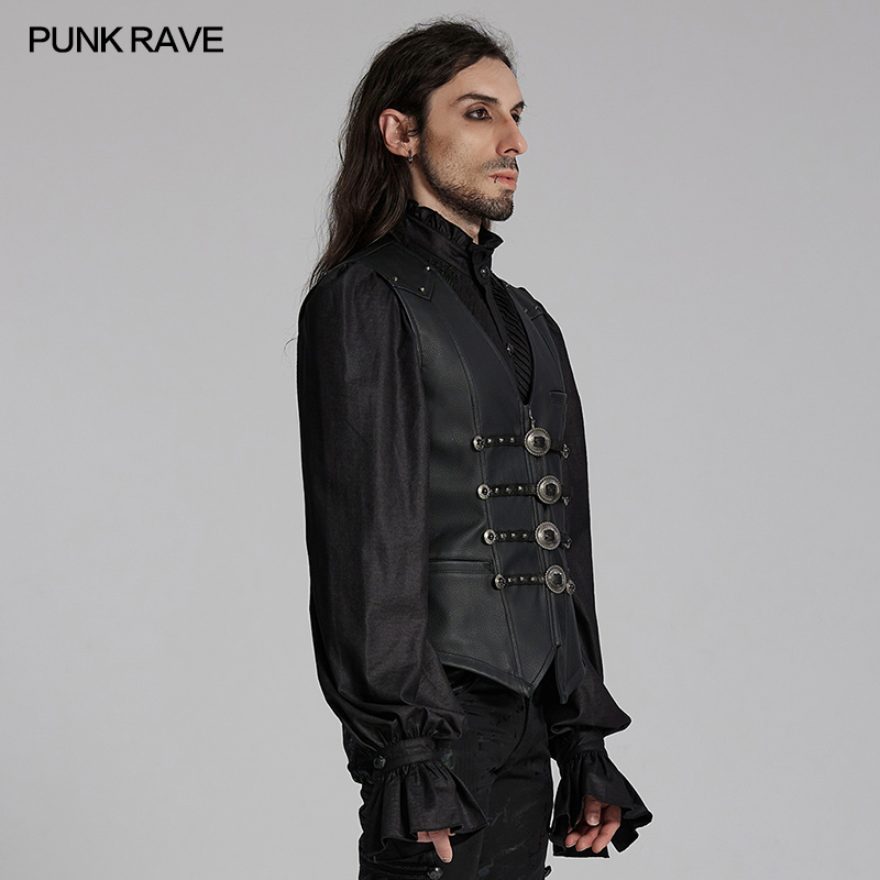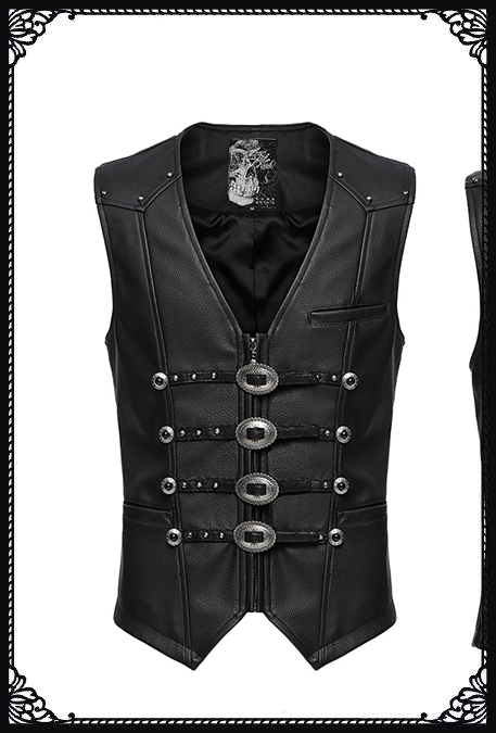 Punk Rave Western Goth Cowboy Concho PU Leather Vest